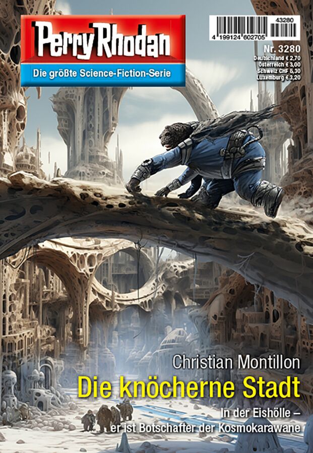 Protoch s’approche. Il salue Shandasar Parpandum, se présentant comme un ami de l’Immortel, dont les Terraniens et leurs alliés sont des ennemis. L’Émir affirme qu’il ment. Shandasar Parpandum demande à chacun de s’exprimer, ce qu’ils font. Une explosion se produit. Des vaisseaux sphériques du Commonwealth dans le ciel ouvrent le feu et attaquent le Box-11. Proloch affirme à Shandasar Parpandum que c’est l’œuvre des Terraniens. Le contact est établi avec le Thora qui s’est mis à l’écart. Il va envoyer une unité les récupérer. Le Khomo Serenti arrive avec le médecin Salud Chu et la pilote, la Cheborparnienne Maxine Golden. Il se posent près des autres. Salud Chu s’occupe de L’Émir, inconscient. L’Émir se réveille dans l’infirmerie du Khomo Serenti. Une alarme retentit. Des vaisseaux vrochons les attaquent. L’Émir téléporte tout le monde à la surface, puis le vaisseau explose. De nouveaux venus les attaquent, des Terraniens au service de la Garde de l’Ombre. L’Émir espionne leurs pensées. Il se concentre sur leur chef, Prosper Foxx. Leurs pensées sont violentes, pleins de souvenirs faux. Ils sont sans doute affectés par le sable stellaire. L’Émir, Bouner Haad et Jamelle Holloran se téléportent à l’endroit où ils pensent que se trouve le transrécepteur qui a été enlevé du Box-11. Pendant, ce temps, Salud Chu et Maxine Golden sont attaqués et tués. Ils arrivent dans une grotte de glace avec des bâtiments faits en os. L’Émir perçoit la présence de Danou Shinshid, d’un Hayèle, de Terraniens et de Vrochons. En compagnie de Shandasar Parpandum, ils montent sur un étrange carrousel et le contact est rompu. Jamelle Holloran, Bouner Haad et L’Émir arrivent près du carrousel. Un être évoquant une poupée avec la forme d’un Halutien apparaît. C’est le gardien du passage, le carrousel étant un accès à la Ville Omniprésente. Le fragment de l’Immortel l’a franchi plus tôt. Pour pouvoir passer à leur tour, ils doivent laisser un gage. Jamelle Holloran laisse un cheveu, Bounder Haad un doigt, et L’Émir doit laisser son activateur cellulaire, qu’il retrouvera au retour. |